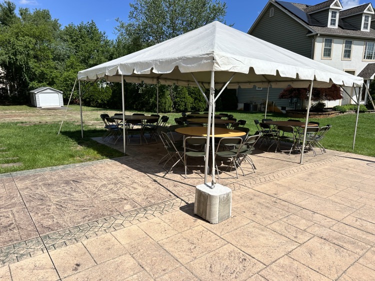 Host an unforgettable backyard party with our 20x20 tent package! Perfect for up to 40 guests, this weather-resistant tent creates a cozy, inviting space for weddings, birthdays, graduations, barbecues, or family gatherings.